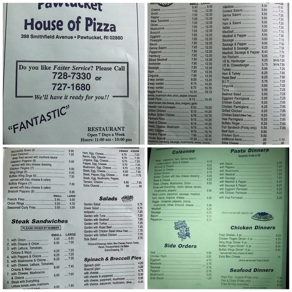 Introducing the menu at Pawtucket House of Pizza, a classic pizza spot in Pawtucket, Rhode Island. Offering a variety of options, from appetizers like Mozzarella Sticks and Fried Calamari to fresh salads and satisfying Steak Sandwiches. Customers rave about the authentic Greek-style pizza, with generous toppings and a nostalgic feel. The atmosphere is casual, with friendly staff and efficient service. While the decor may be basic, the focus is on the delicious food and welcoming ambiance. Whether you're looking for a quick bite or a family meal, Pawtucket House of Pizza is a must-visit spot for pizza lovers in the area. With options for delivery, takeout, and catering, this local gem is a go-to for quality and convenience.